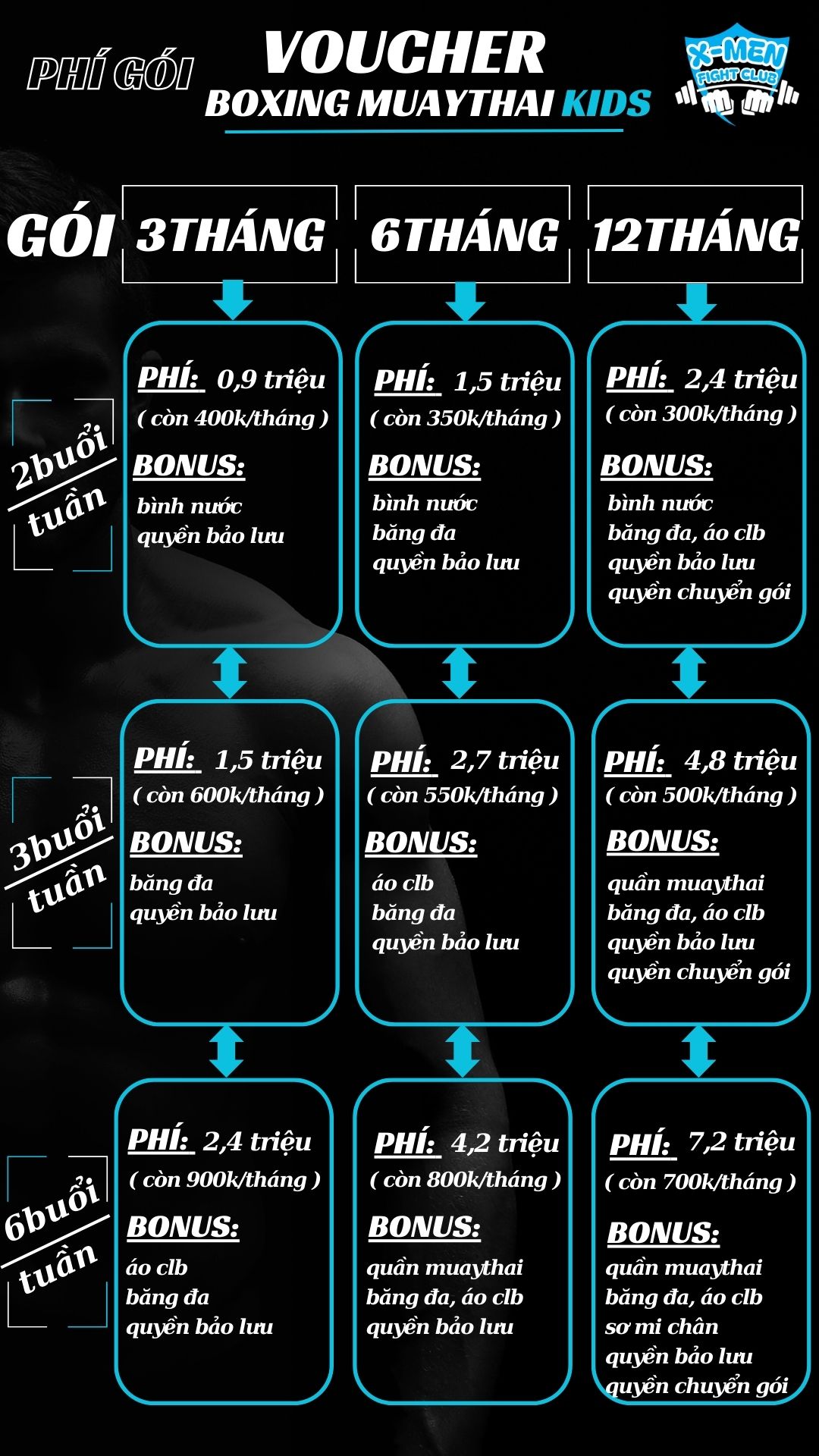 Học phí Boxing Muay Thai thiếu nhi tại X-MEN Gym & Boxing Muaythai được niêm yết rõ ràng, kèm nhiều ưu đãi đặc biệt cho học viên mới.