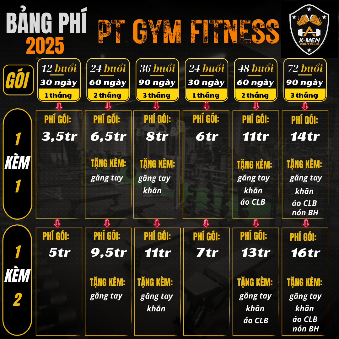 Bạn chọn gói tập phù hợp với thời gian có thể đi tập của mình nhé! Nếu bạn là người mới bắt làm quen với Gym, chưa có kinh nghiệm tập luyện. Nên chọn gói 1 tháng, HLV sẽ cố gắng truyền tải hết những bài tập trong vòng 1 tháng. Sau đó bạn có thể tự tập, đỡ mất nhiều hơn chi phí, và thời gian tìm hiểu.