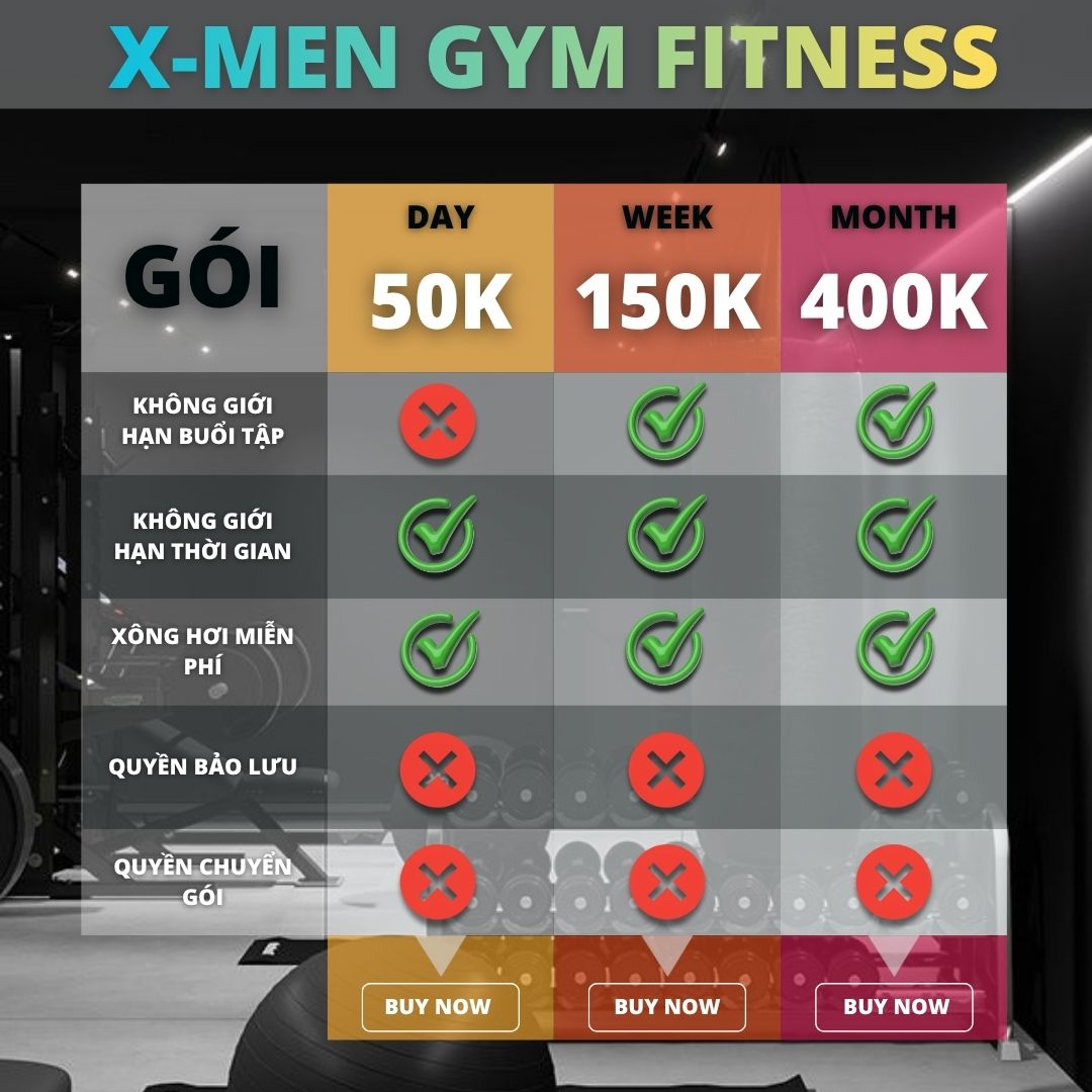 ► Gym phí tuần : 150k/tuần